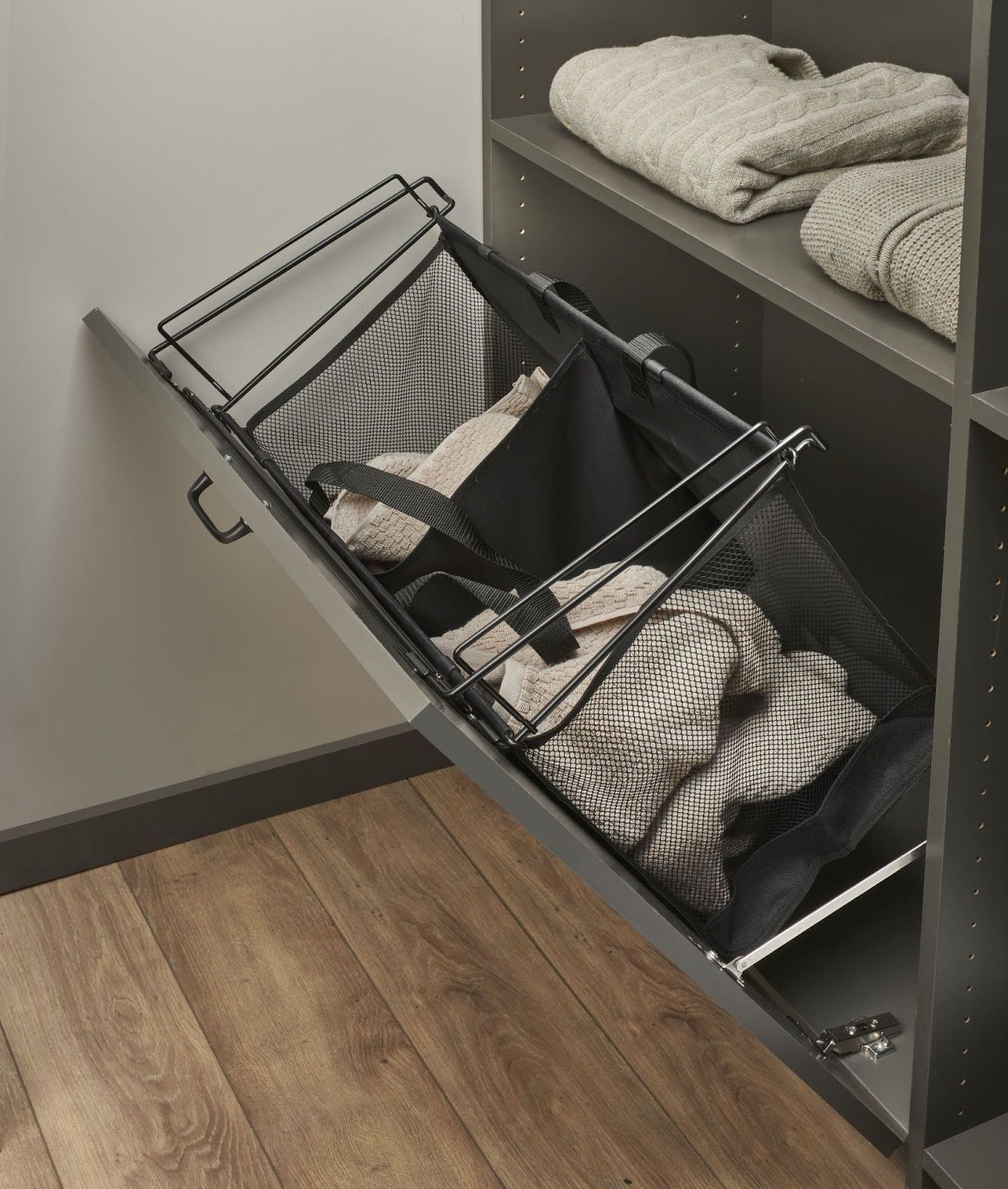 - Pull-out hampers: Keep laundry out of sight but easy to grab