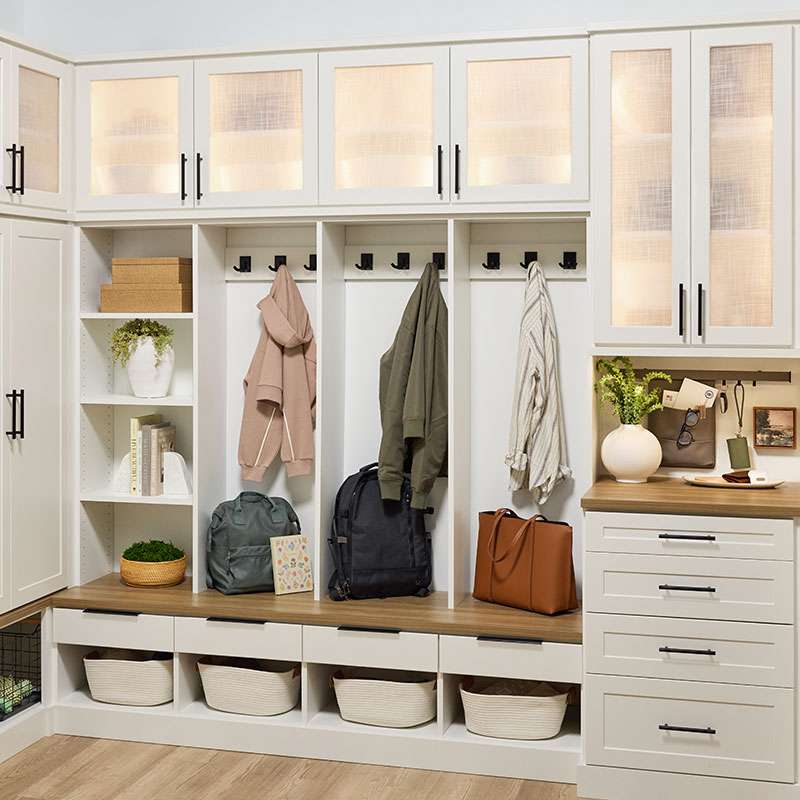 As you work with one of our designers to transform your entryway, we can add storage and organizational solutions—including an entryway bench, mudroom lockers, and an innovative Shoe Shrine®—in various colors. Depending on the options you choose for these features, your designer can suggest different entryway color schemes to bring everything together in a stunning final design.